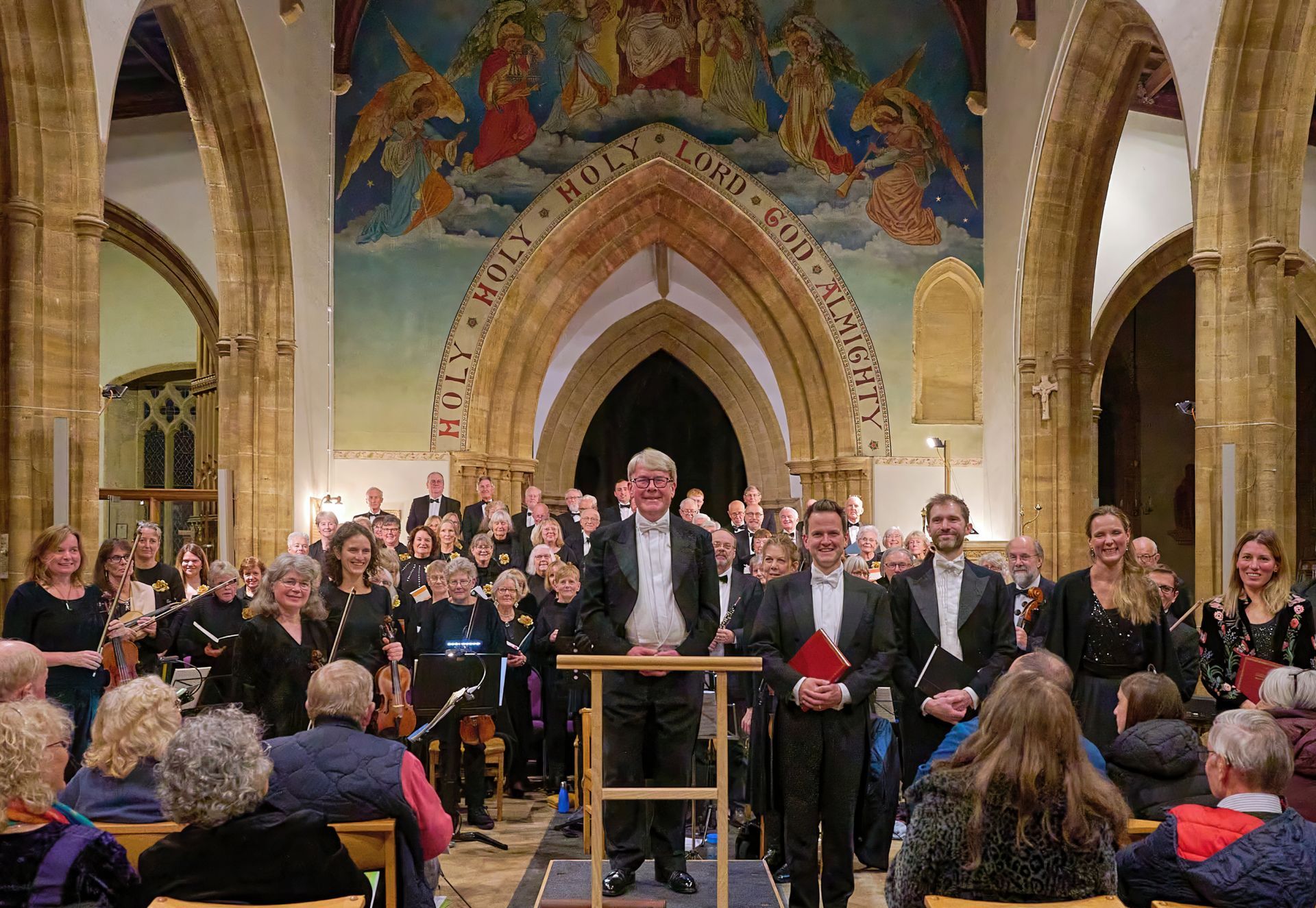 Each year we perform two main concerts with professional soloists and orchestra. The autumn concert is usually given in the Church of St Peter and St Paul, South Petherton and the spring concert normally held at St Mary’s Church, Chard. For special occasions, or for very large pieces such as the Bach B Minor Mass for our Golden Anniversary in 2017 and the Verdi Requiem in Spring 2023 we have taken a larger venue such as the glorious Great Tithe Barn at Haselbury Mill near Crewkerne.
